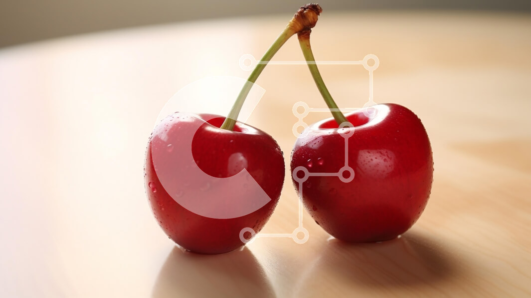 Intra Συλλεκτικό Ξύλινο Παζλ Plywood 4mm - Δύο φρέσκα κόκκινα κεράσια σε μια ξύλινη επιφάνεια Σε Ξύλινο Κουτί - Διαστάσεις: 10x10 cm – 25 κομμάτια