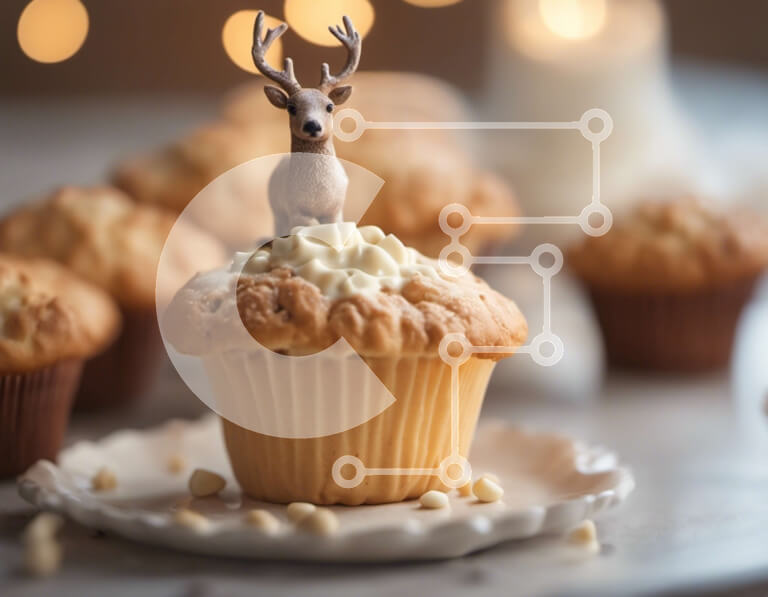 Intra Συλλεκτικό Ξύλινο Παζλ Plywood 4mm - Ειδώλιο ελαφιού σε ανάποδο cupcake με άλλα cupcakes και γλυκά Σε Ξύλινο Κουτί - Διαστάσεις: 10x10 cm – 25 κομμάτια
