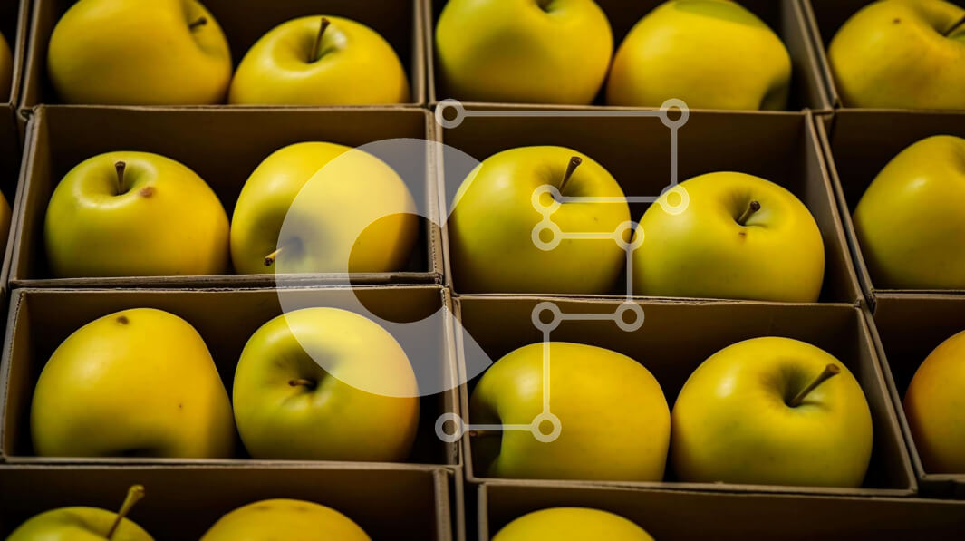 Intra Συλλεκτικό Ξύλινο Παζλ Plywood 4mm - Εμφάνιση κίτρινων μήλων σε χάρτινα κουτιά Σε Ξύλινο Κουτί - Διαστάσεις: 10x10 cm – 25 κομμάτια