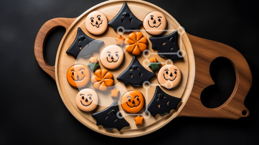 Intra Συλλεκτικό Ξύλινο Παζλ Plywood 4mm - Εορταστικά μπισκότα με θέμα το Halloween σε έναν ξύλινο δίσκο Σε Ξύλινο Κουτί - Διαστάσεις: 10x10 cm – 25 κομμάτια