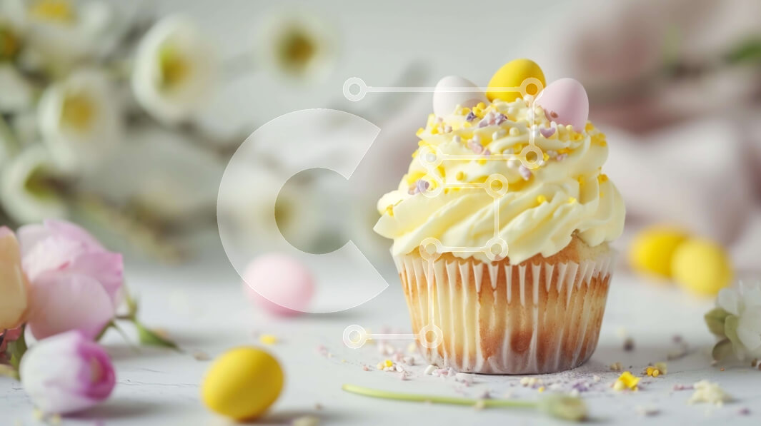 Intra Συλλεκτικό Ξύλινο Παζλ Plywood 4mm - Cupcake με πασχαλινό θέμα με πολύχρωμα λουλούδια και πασχαλινό αυγό Σε Ξύλινο Κουτί - Διαστάσεις: 10x10 cm – 25 κομμάτια