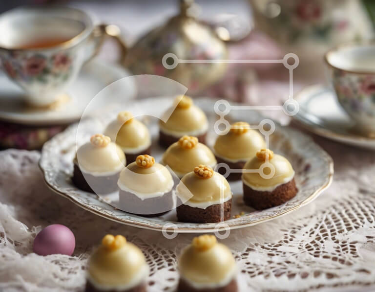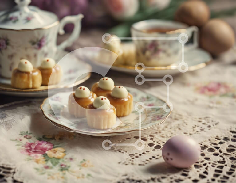 Intra Συλλεκτικό Ξύλινο Παζλ Plywood 4mm - Επιδόρπια με θέμα το Πάσχα σε τραπέζι με φλιτζάνια τσαγιού Σε Ξύλινο Κουτί - Διαστάσεις: 10x10 cm – 25 κομμάτια