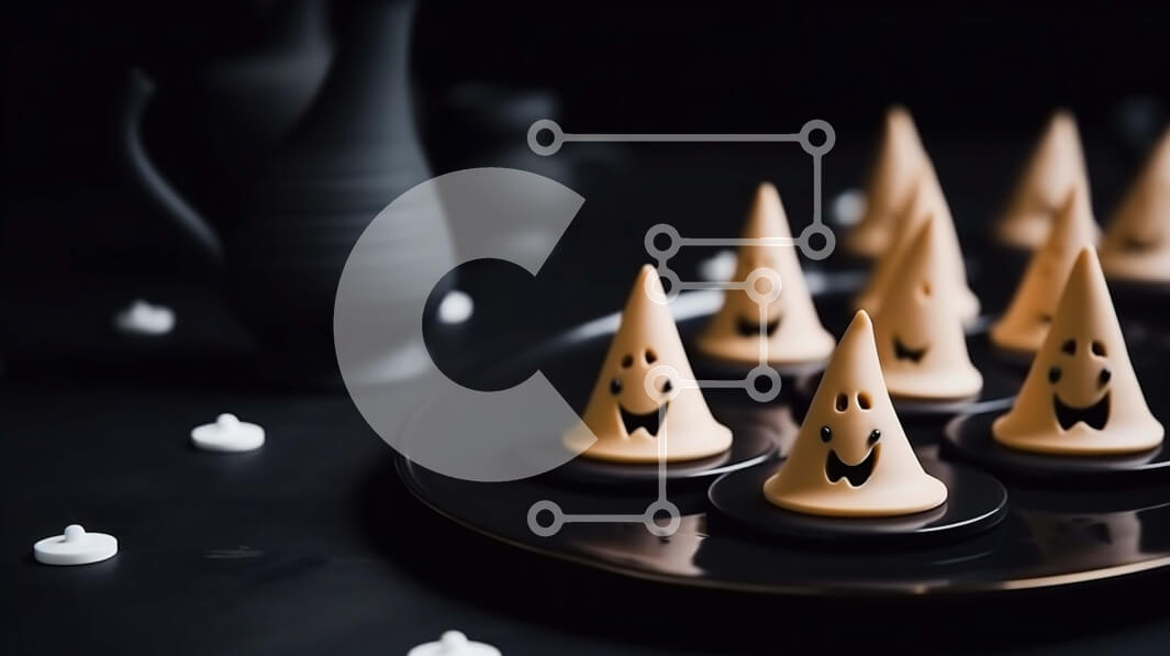 Intra Συλλεκτικό Ξύλινο Παζλ Plywood 4mm - Επιδόρπια με καπέλο μαγισσών με θέμα το Halloween σε μαύρο πιάτο Σε Ξύλινο Κουτί - Διαστάσεις: 10x10 cm – 25 κομμάτια