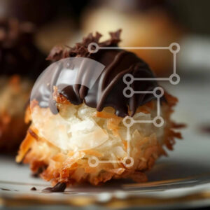Intra Συλλεκτικό Ξύλινο Παζλ Plywood 4mm - Επιδόρπια καρύδας καλυμμένα με σοκολάτα σε λευκό πιάτο με ψεκασμούς Σε Ξύλινο Κουτί - Διαστάσεις: 10x10 cm – 25 κομμάτια
