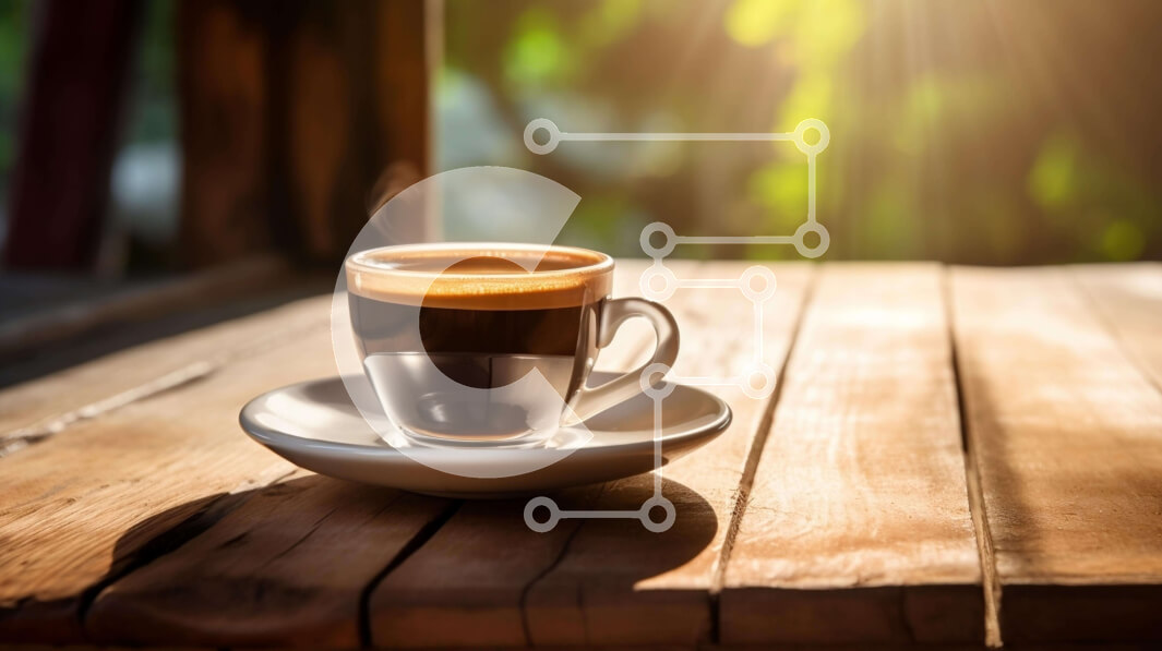 Intra Συλλεκτικό Ξύλινο Παζλ Plywood 4mm - Ζεστό φλιτζάνι καφέ σε ξύλινο τραπέζι με φως του ήλιου Σε Ξύλινο Κουτί - Διαστάσεις: 10x10 cm – 25 κομμάτια