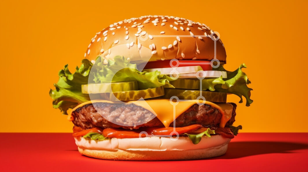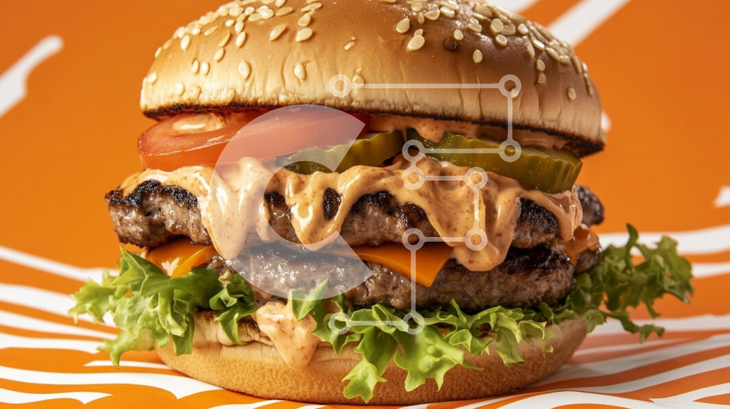 Intra Συλλεκτικό Ξύλινο Παζλ Plywood 4mm - Ζουμερό χάμπουργκερ με μαρούλι και τουρσιά σε πορτοκαλί φόντο Σε Ξύλινο Κουτί - Διαστάσεις: 10x10 cm – 25 κομμάτια