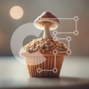 Intra Συλλεκτικό Ξύλινο Παζλ Plywood 4mm - Cupcake σε σχήμα μανιταριού με ξηρούς καρπούς σε λευκό πιάτο Σε Ξύλινο Κουτί - Διαστάσεις: 10x10 cm – 25 κομμάτια