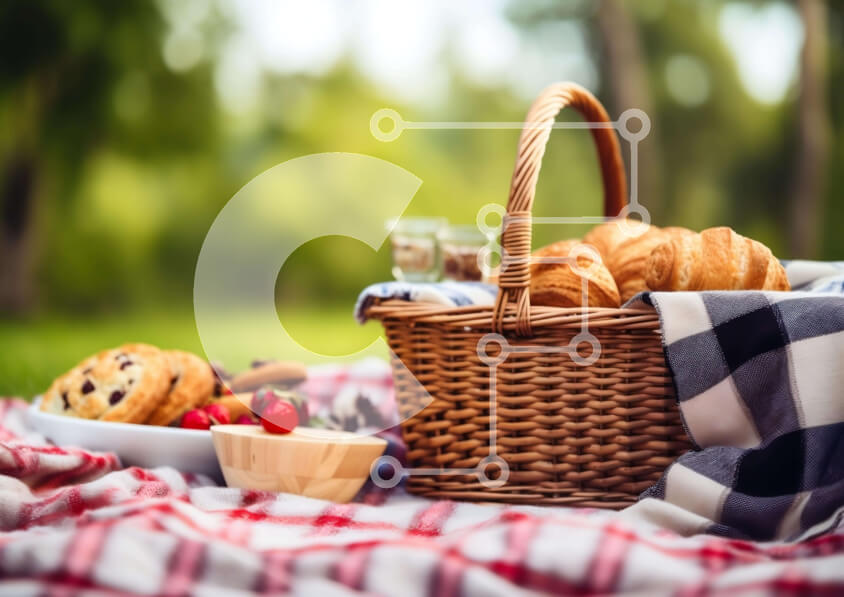 Intra Συλλεκτικό Ξύλινο Παζλ Plywood 4mm - Καλάθι πικνίκ γεμάτο με κρουασάν, μπισκότα και φρούτα Σε Ξύλινο Κουτί - Διαστάσεις: 10x10 cm – 25 κομμάτια