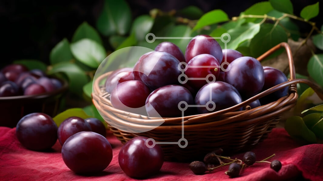Intra Συλλεκτικό Ξύλινο Παζλ Plywood 4mm - Καλάθι με ώριμα δαμάσκηνα σε κόκκινο τραπεζομάντιλο Σε Ξύλινο Κουτί - Διαστάσεις: 10x10 cm – 25 κομμάτια