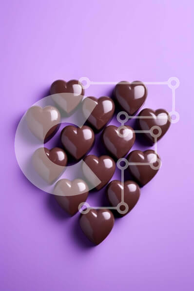 Intra Συλλεκτικό Ξύλινο Παζλ Plywood 4mm - Καραμέλες σοκολάτας σε σχήμα καρδιάς σε αφηρημένο μωβ φόντο Σε Ξύλινο Κουτί - Διαστάσεις: 10x10 cm – 25 κομμάτια