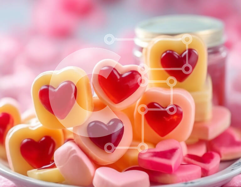 Intra Συλλεκτικό Ξύλινο Παζλ Plywood 4mm - Καραμέλες σοκολάτας σε σχήμα καρδιάς σε μπεζ φόντο Σε Ξύλινο Κουτί - Διαστάσεις: 10x10 cm – 25 κομμάτια