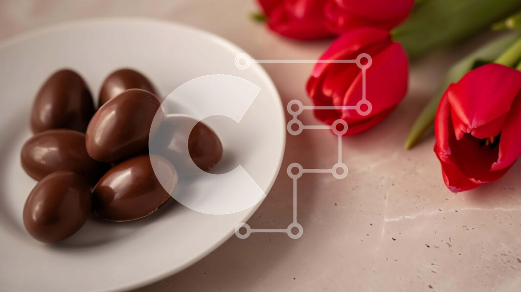 Intra Συλλεκτικό Ξύλινο Παζλ Plywood 4mm - Καραμέλες σοκολάτας και κόκκινες τουλίπες σε ένα άσπρο πιάτο Σε Ξύλινο Κουτί - Διαστάσεις: 10x10 cm – 25 κομμάτια