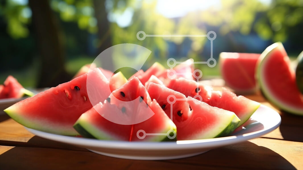 Intra Συλλεκτικό Ξύλινο Παζλ Plywood 4mm - Καρπούζι σε φέτες σε ένα ξύλινο τραπέζι στο φως του ήλιου Σε Ξύλινο Κουτί - Διαστάσεις: 10x10 cm – 25 κομμάτια
