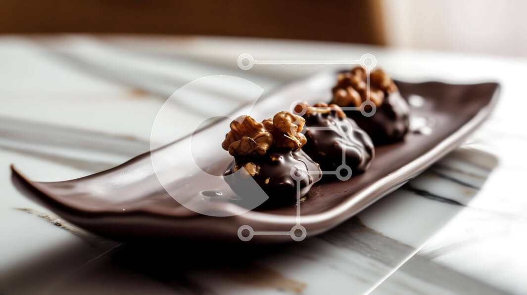 Intra Συλλεκτικό Ξύλινο Παζλ Plywood 4mm - Καρύδια καλυμμένα με σοκολάτα σε σκούρο καφέ δίσκο Σε Ξύλινο Κουτί - Διαστάσεις: 10x10 cm – 25 κομμάτια