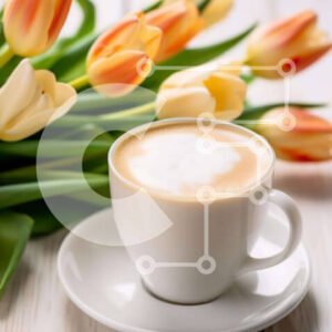 Intra Συλλεκτικό Ξύλινο Παζλ Plywood 4mm - Καφές με σαντιγί και πορτοκαλί τουλίπες Σε Ξύλινο Κουτί - Διαστάσεις: 10x10 cm – 25 κομμάτια