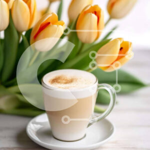 Intra Συλλεκτικό Ξύλινο Παζλ Plywood 4mm - Καφές με σαντιγί και κίτρινες τουλίπες Σε Ξύλινο Κουτί - Διαστάσεις: 10x10 cm – 25 κομμάτια