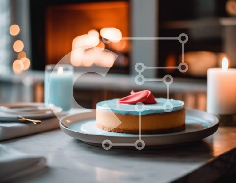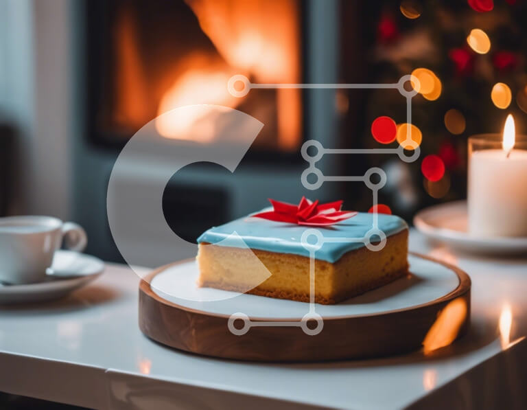 Intra Συλλεκτικό Ξύλινο Παζλ Plywood 4mm - Κέικ με μπλε και άσπρο πάγωμα στο τραπέζι μπροστά από το τζάκι Σε Ξύλινο Κουτί - Διαστάσεις: 10x10 cm – 25 κομμάτια