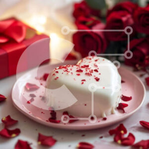 Intra Συλλεκτικό Ξύλινο Παζλ Plywood 4mm - Κέικ σε σχήμα καρδιάς με λευκό παγωμένο και κόκκινο ροδοπέταλα Σε Ξύλινο Κουτί - Διαστάσεις: 10x10 cm – 25 κομμάτια