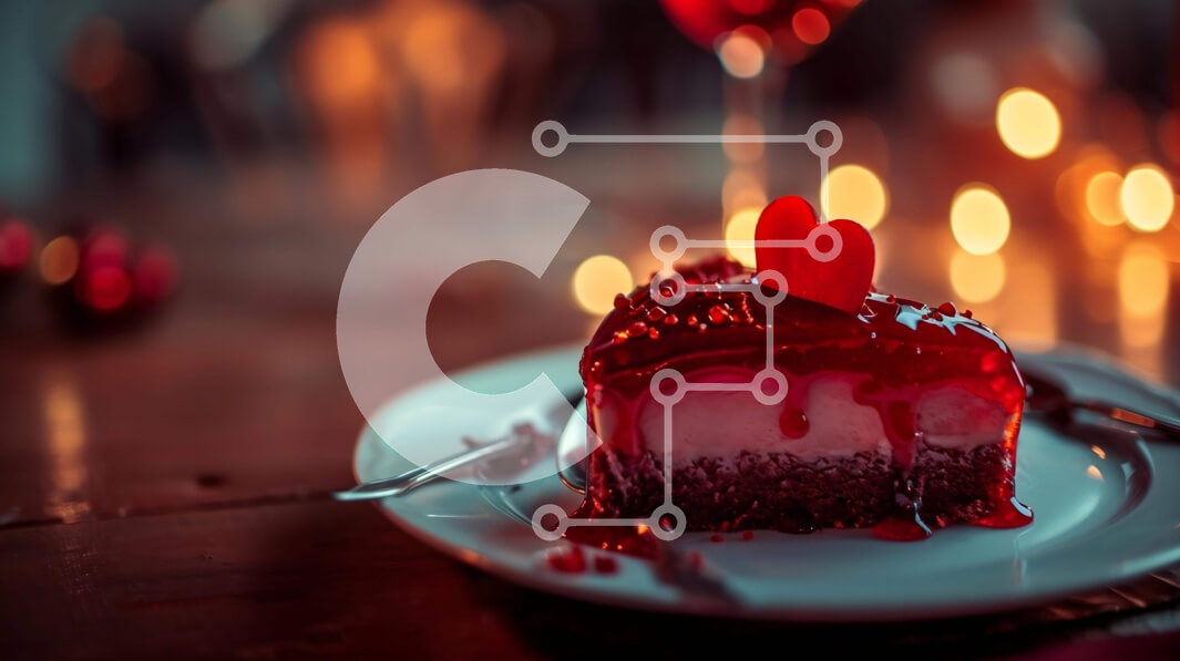 Intra Συλλεκτικό Ξύλινο Παζλ Plywood 4mm - Κέικ σε σχήμα καρδιάς με κόκκινο γλάσο και πασπαλίζει σε ασημένιο πιάτο Σε Ξύλινο Κουτί - Διαστάσεις: 10x10 cm – 25 κομμάτια