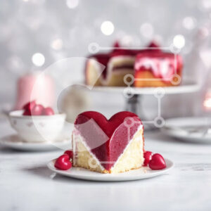 Intra Συλλεκτικό Ξύλινο Παζλ Plywood 4mm - Κέικ σε σχήμα καρδιάς με κόκκινες καρδιές και ψεκάζει σε λευκό πιάτο Σε Ξύλινο Κουτί - Διαστάσεις: 10x10 cm – 25 κομμάτια