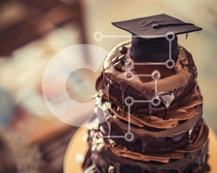 Intra Συλλεκτικό Ξύλινο Παζλ Plywood 4mm - Κέικ σοκολάτας τριών επιπέδων με καπέλα αποφοίτησης Σε Ξύλινο Κουτί - Διαστάσεις: 10x10 cm – 25 κομμάτια