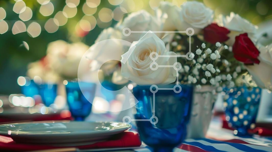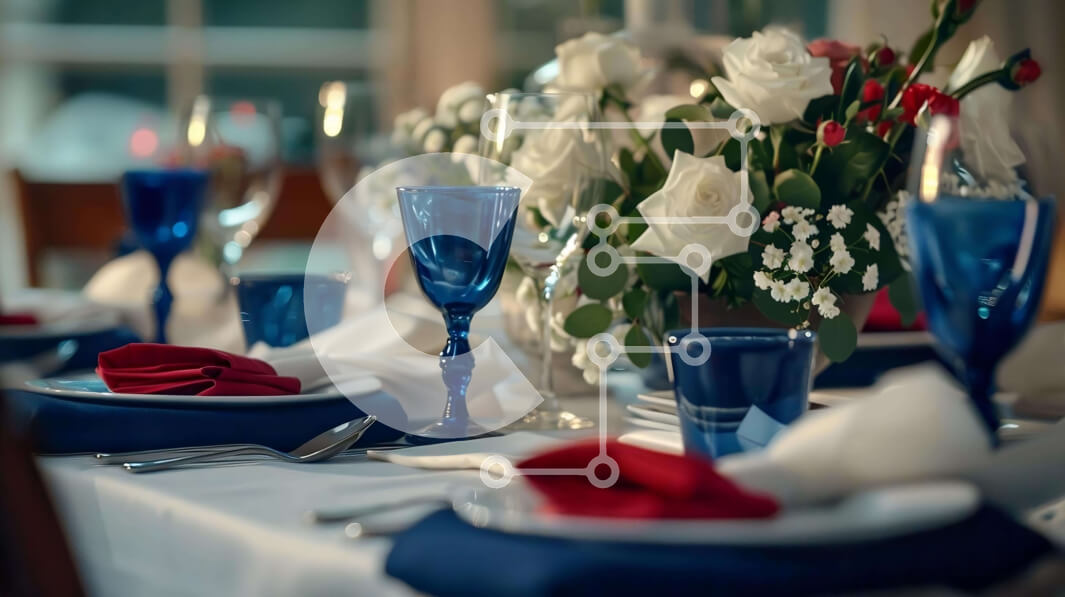 Intra Συλλεκτικό Ξύλινο Παζλ Plywood 4mm - Κομψή ρύθμιση τραπεζιού με κόκκινο, λευκό και μπλε τόνους Σε Ξύλινο Κουτί - Διαστάσεις: 10x10 cm – 25 κομμάτια