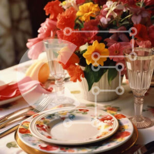 Intra Συλλεκτικό Ξύλινο Παζλ Plywood 4mm - Κομψή ρύθμιση τραπεζαρίας με πολύχρωμα λουλούδια Σε Ξύλινο Κουτί - Διαστάσεις: 10x10 cm – 25 κομμάτια