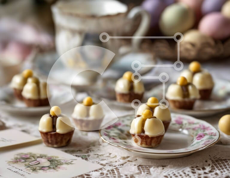 Intra Συλλεκτικό Ξύλινο Παζλ Plywood 4mm - Κομψό επιδόρπιο τραπέζι με cupcakes, μπισκότα και μακαρόν Σε Ξύλινο Κουτί - Διαστάσεις: 10x10 cm – 25 κομμάτια