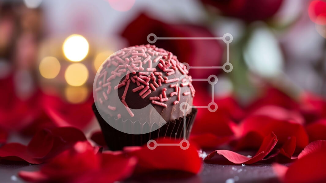 Intra Συλλεκτικό Ξύλινο Παζλ Plywood 4mm - Κομψό και ρομαντικό επιδόρπιο σοκολάτας σε κόκκινα ροδοπέταλα Σε Ξύλινο Κουτί - Διαστάσεις: 10x10 cm – 25 κομμάτια