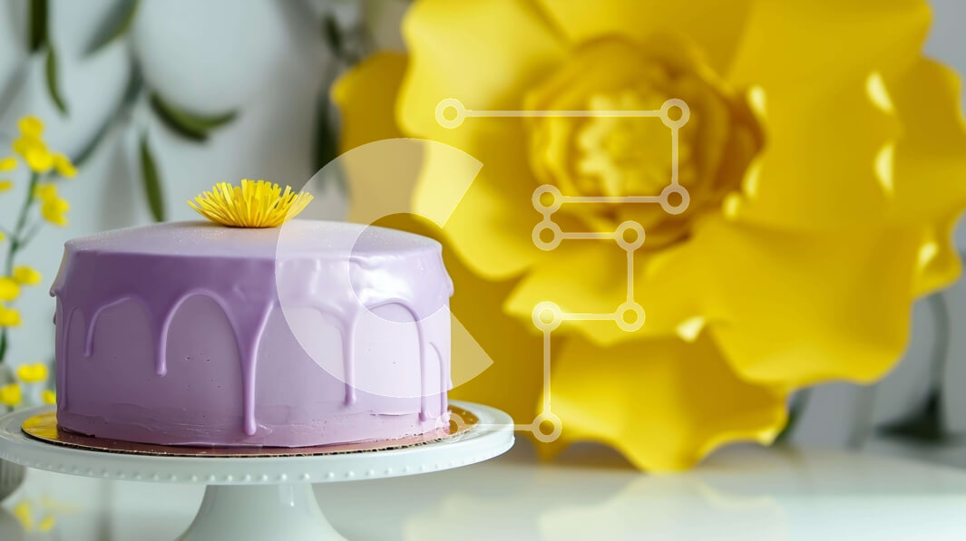Intra Συλλεκτικό Ξύλινο Παζλ Plywood 4mm - Κομψό μωβ κέικ με γλάσο που στάζει και κίτρινα λουλούδια Σε Ξύλινο Κουτί - Διαστάσεις: 10x10 cm – 25 κομμάτια