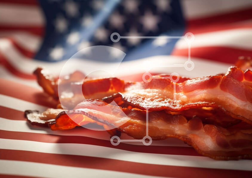 Intra Συλλεκτικό Ξύλινο Παζλ Plywood 4mm - Κοντινό πλάνο του φρέσκου μπέικον στην αμερικανική σημαία Σε Ξύλινο Κουτί - Διαστάσεις: 10x10 cm – 25 κομμάτια