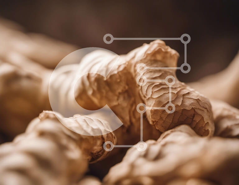 Intra Συλλεκτικό Ξύλινο Παζλ Plywood 4mm - Κοντινό πλάνο του φρέσκου τζίντζερ για μαγειρικούς και ιατρικούς σκοπούς Σε Ξύλινο Κουτί - Διαστάσεις: 10x10 cm – 25 κομμάτια