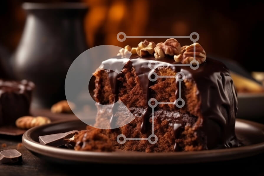 Intra Συλλεκτικό Ξύλινο Παζλ Plywood 4mm - Decadent κέικ σοκολάτας με ψιλοκομμένα πεκάν και σάλτσα σοκολάτας Σε Ξύλινο Κουτί - Διαστάσεις: 10x10 cm – 25 κομμάτια