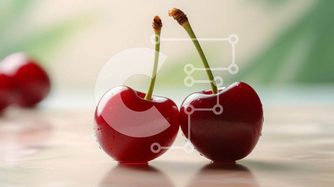 Intra Συλλεκτικό Ξύλινο Παζλ Plywood 4mm - Κοντινό πλάνο φρέσκων κερασιών με σταγονίδια νερού Σε Ξύλινο Κουτί - Διαστάσεις: 10x10 cm – 25 κομμάτια
