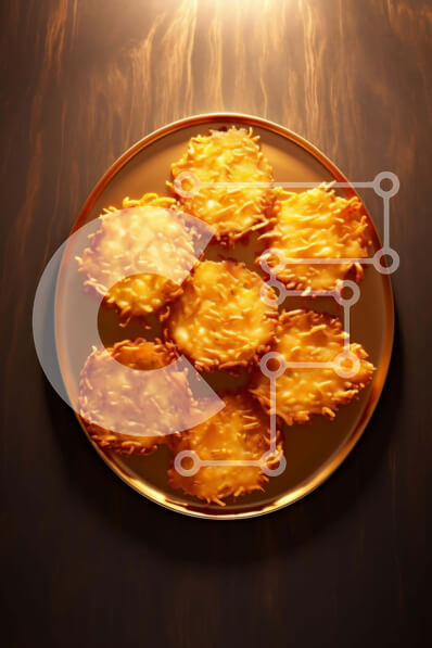 Intra Συλλεκτικό Ξύλινο Παζλ Plywood 4mm - Golden Fritters σε ένα μαύρο πιάτο Σε Ξύλινο Κουτί - Διαστάσεις: 10x10 cm – 25 κομμάτια