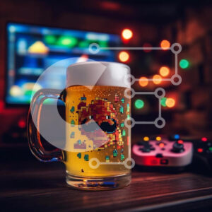 Intra Συλλεκτικό Ξύλινο Παζλ Plywood 4mm - Pixelated κούπα μπύρας σε μια ατμόσφαιρα τυχερού παιχνιδιού Σε Ξύλινο Κουτί - Διαστάσεις: 10x10 cm – 25 κομμάτια