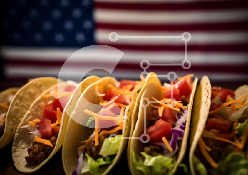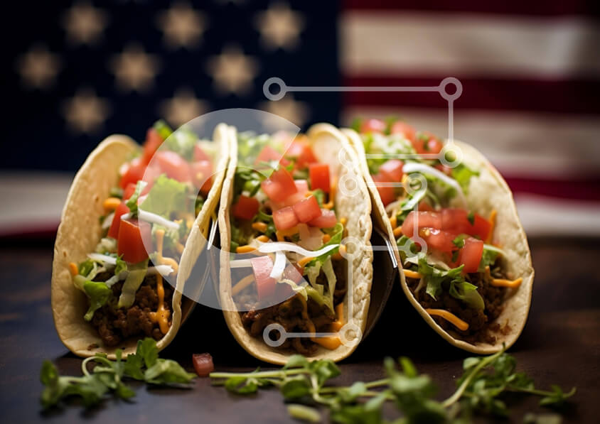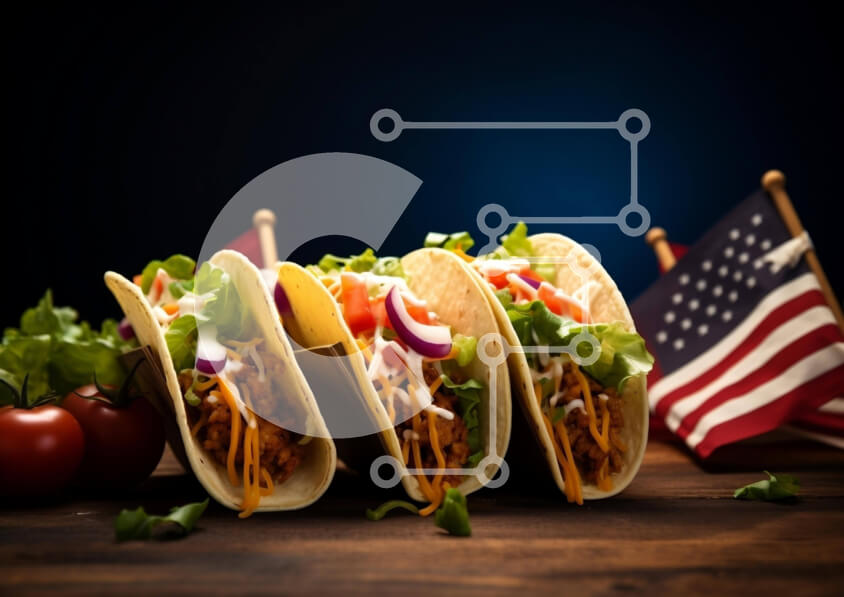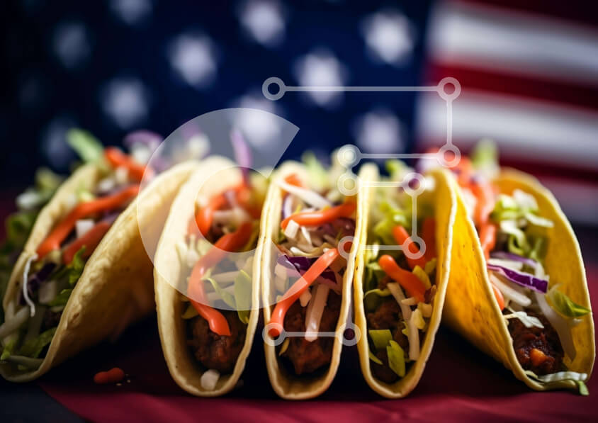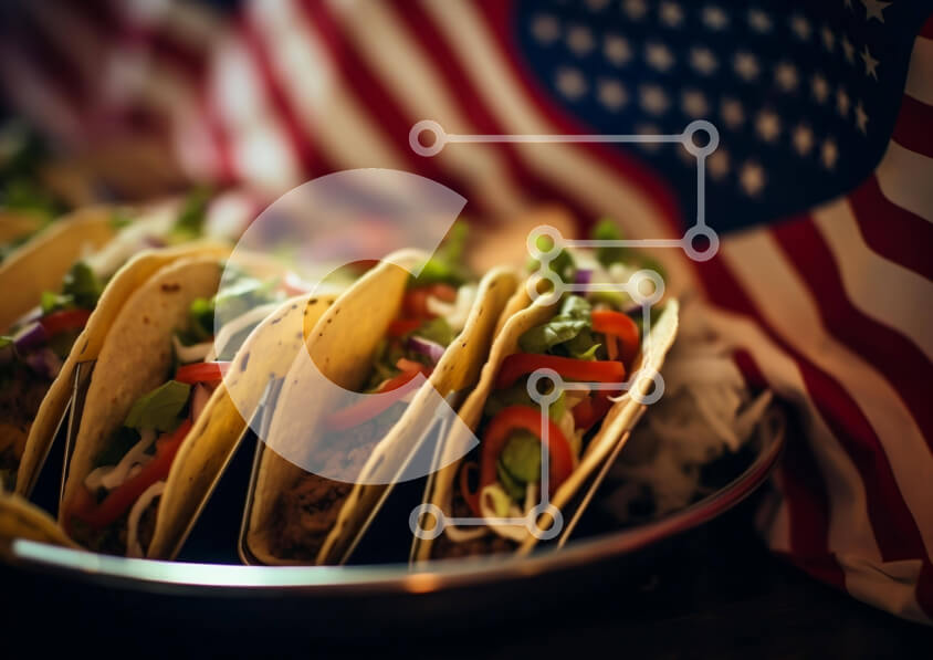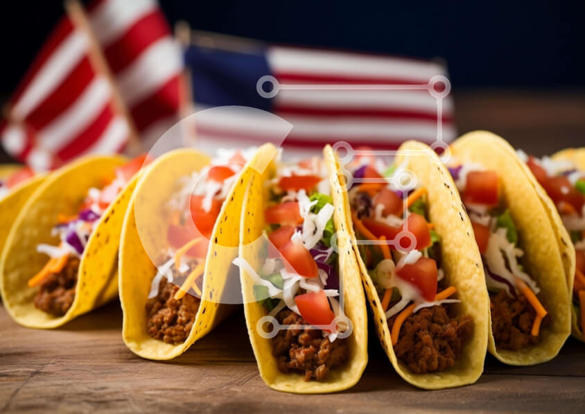 Intra Συλλεκτικό Ξύλινο Παζλ Plywood 4mm - Tacos σε ένα ξύλινο τραπέζι με την αμερικανική σημαία στο φόντο Σε Ξύλινο Κουτί - Διαστάσεις: 10x10 cm – 25 κομμάτια