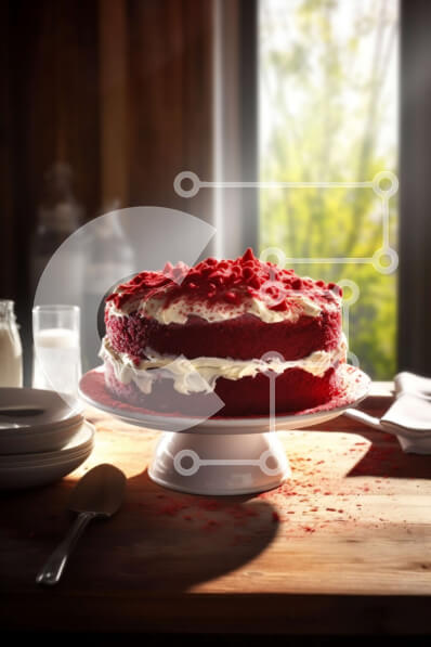 Intra Συλλεκτικό Ξύλινο Παζλ Plywood 4mm - Απολαυστική εικόνα κόκκινου βελούδινου κέικ με κρέμα τυριού σε ένα ξύλινο τραπέζι με θέα στο δάσος Σε Ξύλινο Κουτί - Διαστάσεις: 10x10 cm – 25 κομμάτια