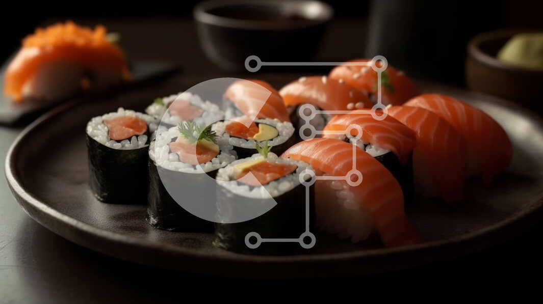 Intra Συλλεκτικό Ξύλινο Παζλ Plywood 4mm - Απολαύστε τη γεύση του φρέσκου σούσι με σάλτσα σόγιας και Wasabi Σε Ξύλινο Κουτί - Διαστάσεις: 10x10 cm – 25 κομμάτια