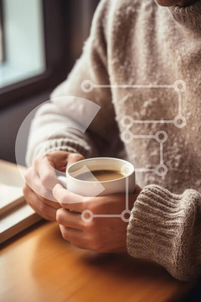 Intra Συλλεκτικό Ξύλινο Παζλ Plywood 4mm - Cozy Coffee Moment: Μια κοντινή λήψη ζεστού καφέ στον ατμό σε ένα δωμάτιο με χαμηλό φωτισμό Σε Ξύλινο Κουτί - Διαστάσεις: 10x10 cm – 25 κομμάτια