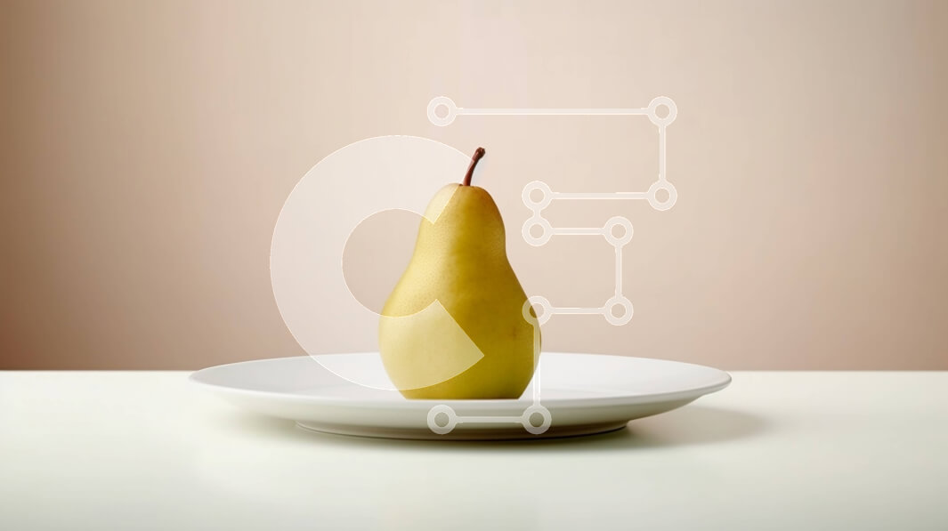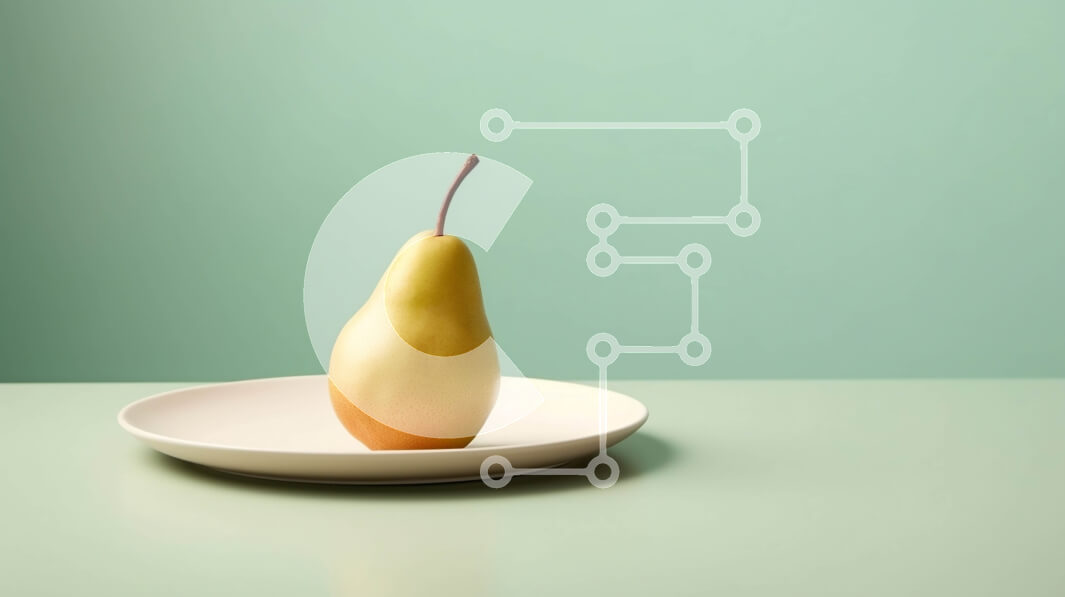 Intra Συλλεκτικό Ξύλινο Παζλ Plywood 4mm - Αχλάδι σε λευκό πιάτο με πράσινο φόντο Σε Ξύλινο Κουτί - Διαστάσεις: 10x10 cm – 25 κομμάτια