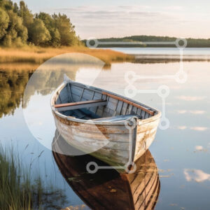 Intra Συλλεκτικό Ξύλινο Παζλ Plywood 4mm - Γαλήνια εικόνα της ξύλινης βάρκας σε μια λίμνη κατά τη διάρκεια του ηλιοβασιλέματος Σε Ξύλινο Κουτί - Διαστάσεις: 10x10 cm – 25 κομμάτια