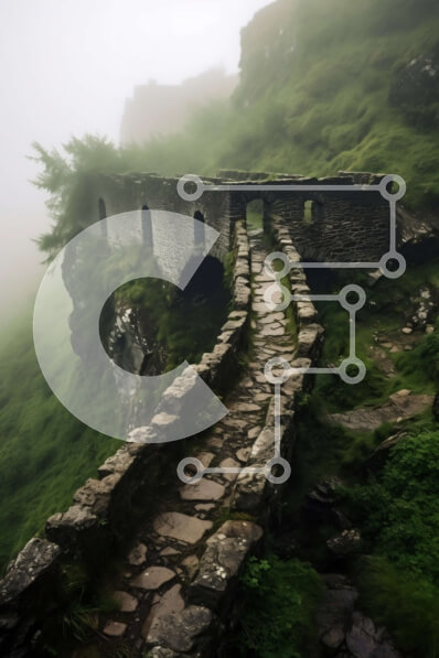 Intra Συλλεκτικό Ξύλινο Παζλ Plywood 4mm - Γαλήνια εικόνα μιας πέτρινης γέφυρας πάνω από ένα ομιχλώδες ορεινό τοπίο Σε Ξύλινο Κουτί - Διαστάσεις: 10x10 cm – 25 κομμάτια