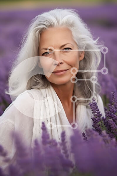 Intra Συλλεκτικό Ξύλινο Παζλ Plywood 4mm - Γαλήνια εικόνα της ηλικιωμένης γυναίκας που στέκεται σε ένα χωράφι με λεβάντα Σε Ξύλινο Κουτί - Διαστάσεις: 10x10 cm – 25 κομμάτια