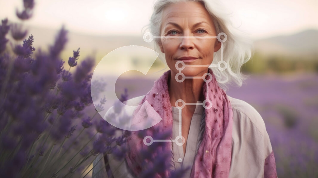 Intra Συλλεκτικό Ξύλινο Παζλ Plywood 4mm - Γαλήνια ηλικιωμένη γυναίκα στο πεδίο της λεβάντας Σε Ξύλινο Κουτί - Διαστάσεις: 10x10 cm – 25 κομμάτια
