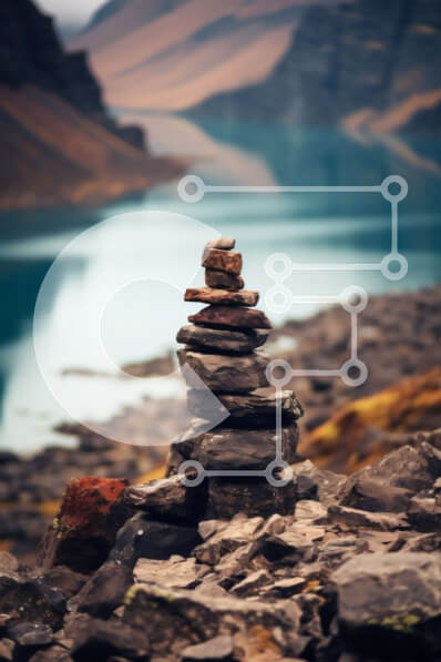 Intra Συλλεκτικό Ξύλινο Παζλ Plywood 4mm - Γαλήνια εικόνα των βράχων και της ορεινής λίμνης με τα χιονισμένα βουνά στο φόντο Σε Ξύλινο Κουτί - Διαστάσεις: 10x10 cm – 25 κομμάτια