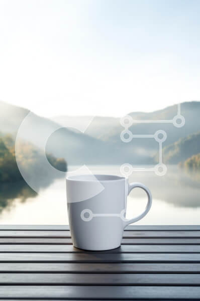 Intra Συλλεκτικό Ξύλινο Παζλ Plywood 4mm - Γαλήνια πρωινή σκηνή με White Cup και Mountain Lake Σε Ξύλινο Κουτί - Διαστάσεις: 10x10 cm – 25 κομμάτια