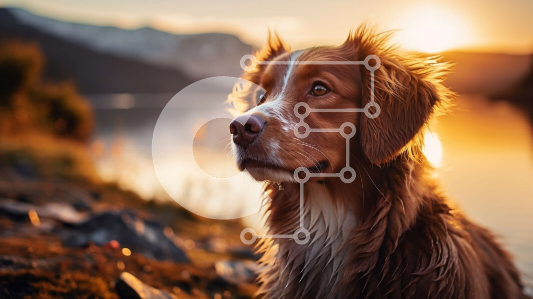 Intra Συλλεκτικό Ξύλινο Παζλ Plywood 4mm - Σκύλος στη βραχώδη ακτή δίπλα στη λίμνη στο ηλιοβασίλεμα Σε Ξύλινο Κουτί - Διαστάσεις: 10x10 cm – 25 κομμάτια