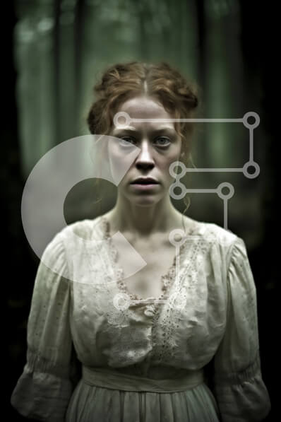Intra Συλλεκτικό Ξύλινο Παζλ Plywood 4mm - Σοβαρή γυναίκα με λευκό φόρεμα στο σκοτεινό δάσος με κόκκινα μαλλιά Σε Ξύλινο Κουτί - Διαστάσεις: 10x10 cm – 25 κομμάτια