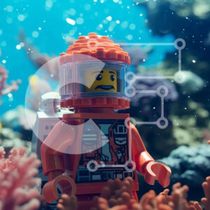 Intra Συλλεκτικό Ξύλινο Παζλ Plywood 4mm - Φιγούρα Lego με πορτοκαλί στολή κατάδυσης υποβρύχια Σε Ξύλινο Κουτί - Διαστάσεις: 10x10 cm – 25 κομμάτια
